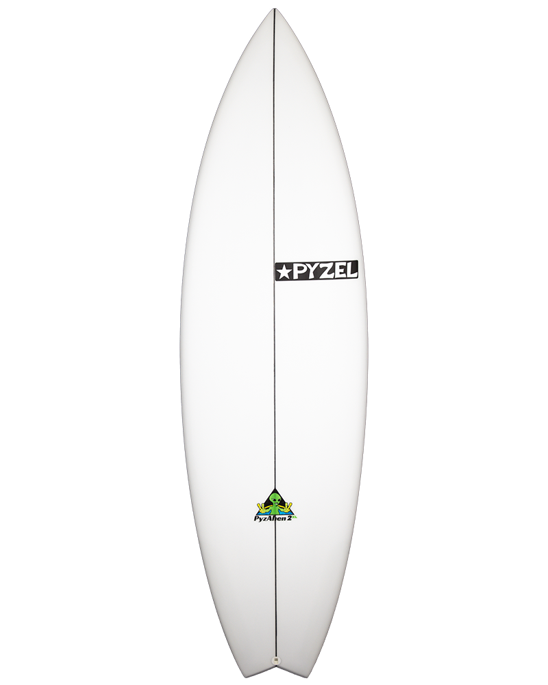 The Pyzalien 2 works great in a huge variety of waves, from points to reefs to beach break, and has one of the most user friendly, yet high performance rockers weve made, smooth and clean, with med/low entry running through to med+ tail rocker. The bottom has a single concave starting in the nose, running under the front foot, blending into double concave and then VEE in the last 6 inches of the tail which adds release that helps ease you into turns. This rocker/bottom combo gives the board quick, effortless speed from take-off, while increasing the responsiveness and control, allowing for easier rail to rail transitions at high speeds. The outline is clean and simple, no hips or wings just a fuller nose and wider tail which keeps the board very fast and drivey, making for easy flow through flatter sections. One of the biggest changes from the Original is a more domed deck with refined rails, so we recommend that you order it the same thickness, 1/4 to 1/2 inch wider and 2-3 inches shorter than your standard shortboard. Comes standard with a clean swallow tail for added snappiness and spark! This is a great Daily Driver board with a High Performance personality, built for most levels of surfer, from novice to Pro.